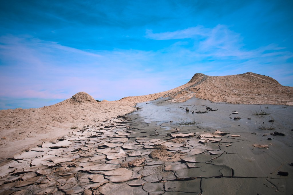 The salse — the word means “mud springs” in the local dialect — are small volcanic vents that continuously emit cold mud, water, and natural gas from deep underground. They’re not hot like traditional volcanoes; the mud that bubbles up is cold, grey, and dense, pushed to the surface by pressurized methane rising through geological faults. Over time, the mud builds up into small cones and craters, some just a few centimeters high, others reaching over a meter. The surrounding terrain dries and cracks between eruptions, creating a landscape of fractured grey plates that looks more like the surface of Mars than northern Italy.